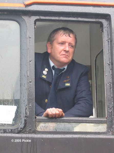 Driver Ken greets cab visitors on Saturday afternoon whilst Bob undertakes crowd control duties at the foot of 86213's steps.