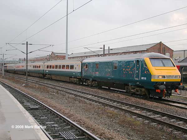 With the arrival of DVT 82115, further testing and driver training took place using the loco in TDM push-pull mode. Here the first Northbound run passes Grantham with 82115 leading.