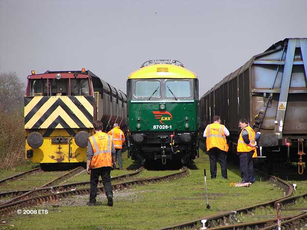 87026, 87008 and 87007 await departure from Long Marston on 22nd April 2008.