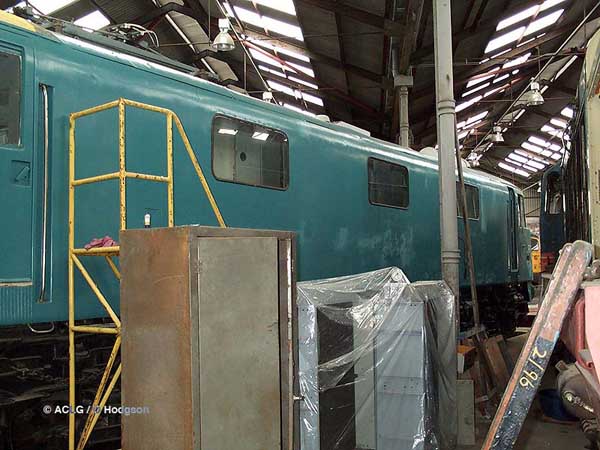 With 83012 turned, work started on rubbing down the paintwork on the equipment side, resulting in this softened look to the stripes.