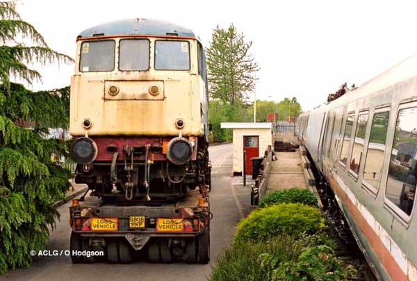 A side view of 85101 as it is winched into place.