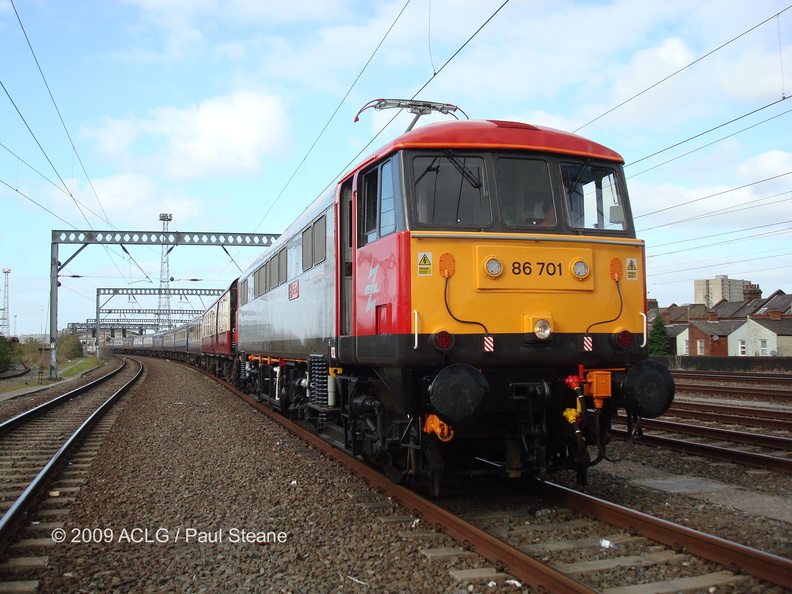 86701 (top-n-tail with 86702) with a scratch set of coaches on their loaded test run, at Northampton.