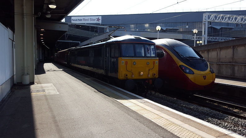 86101 at the buffer stops at London Euston after arriving with train 1M11, the Lowland Caledonian Sleeper, which it had worked throughout from Glasgow Central. It will shortly shunt clear of the platform to allow the empty coaches in for 1Z85, 11:19 football special London Euston to Liverpool Lime Street, which 86101 will work throughout.