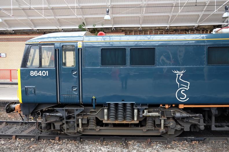 Close up view of the No.2 end of 86401 in platform 8 at Crewe.