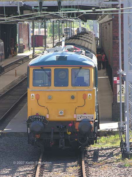 86101 ready for departure from Crewe LNWR on 3rd May 2007, with the blue/grey Mk3 set.
