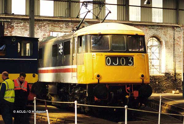 E3003 (81002) shows off its new yellow warning panels in the roundhouse.